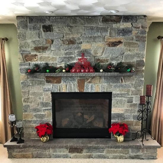 This project is one of our favorites to share--because it was our first featured #FireplaceFriday photo on Instagram, a tradition started in 2018! Connecticut Blend Ashlar showcases the full color range of the collection in this fireplace design. The way the three different patterns that make up Ashlar (Small Squares, Ledgestone, and Strip) are pieced together give it a customized look. The holiday decor adds a festive feel to the daily routine and when hosting company.