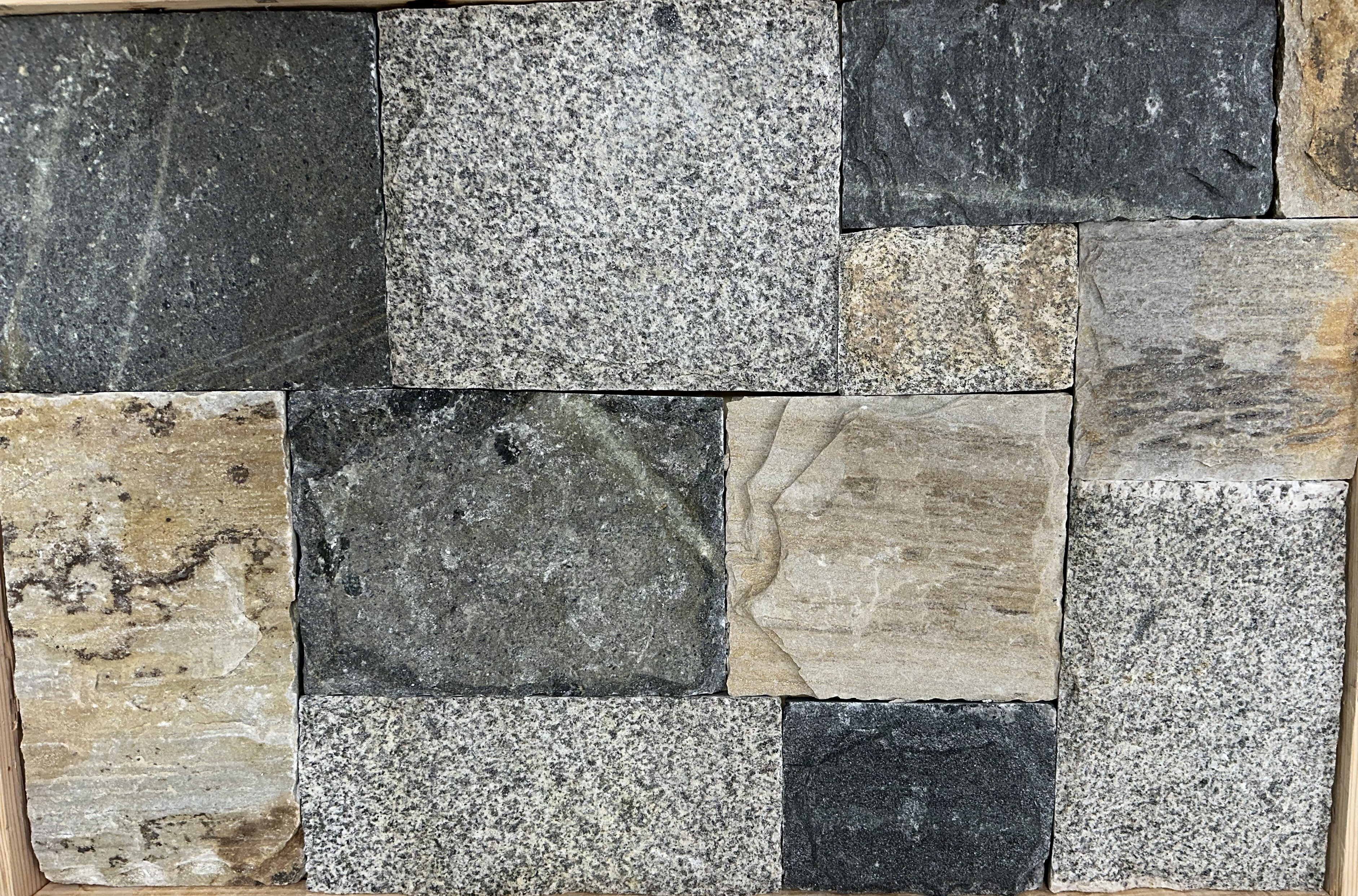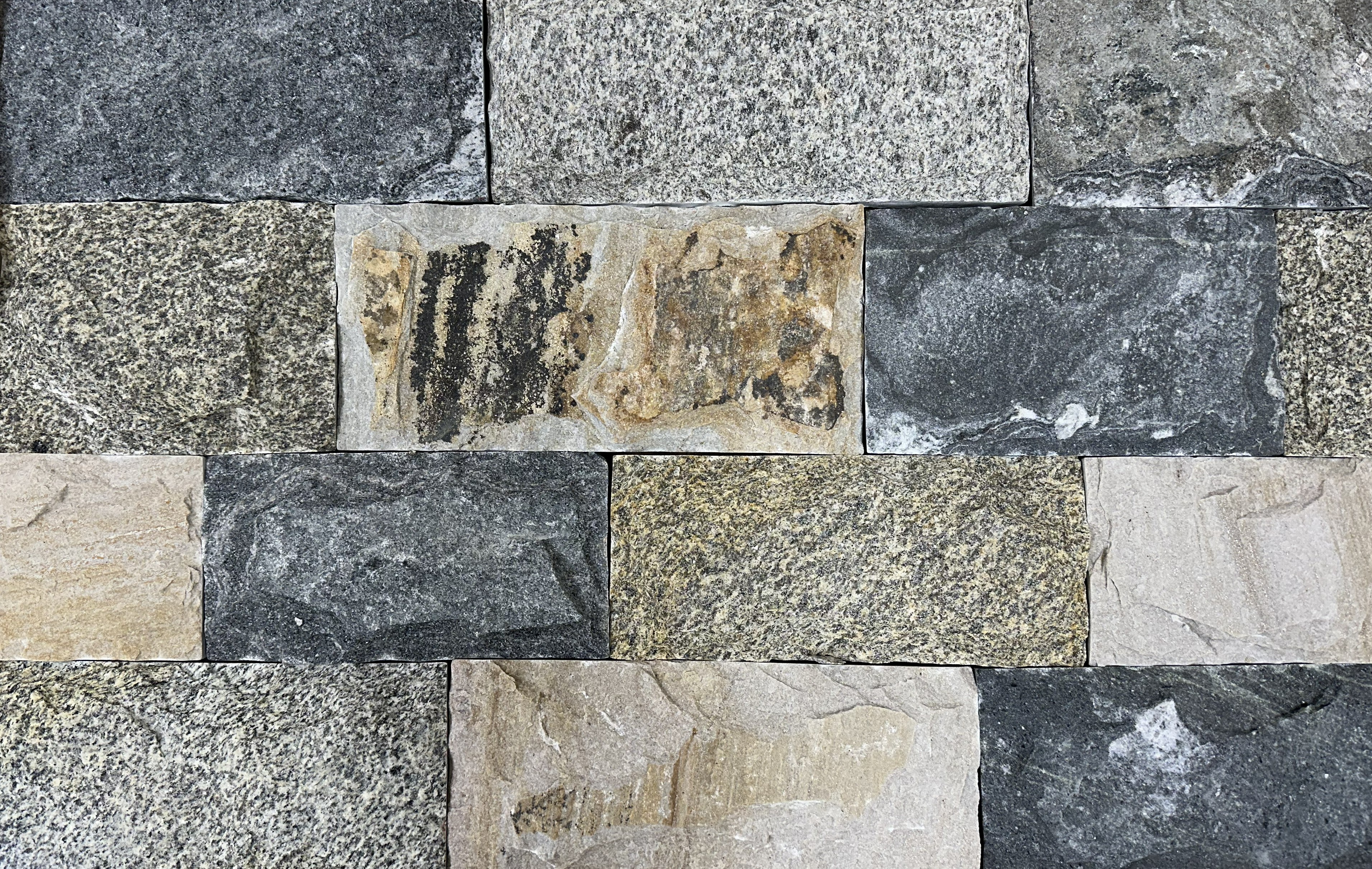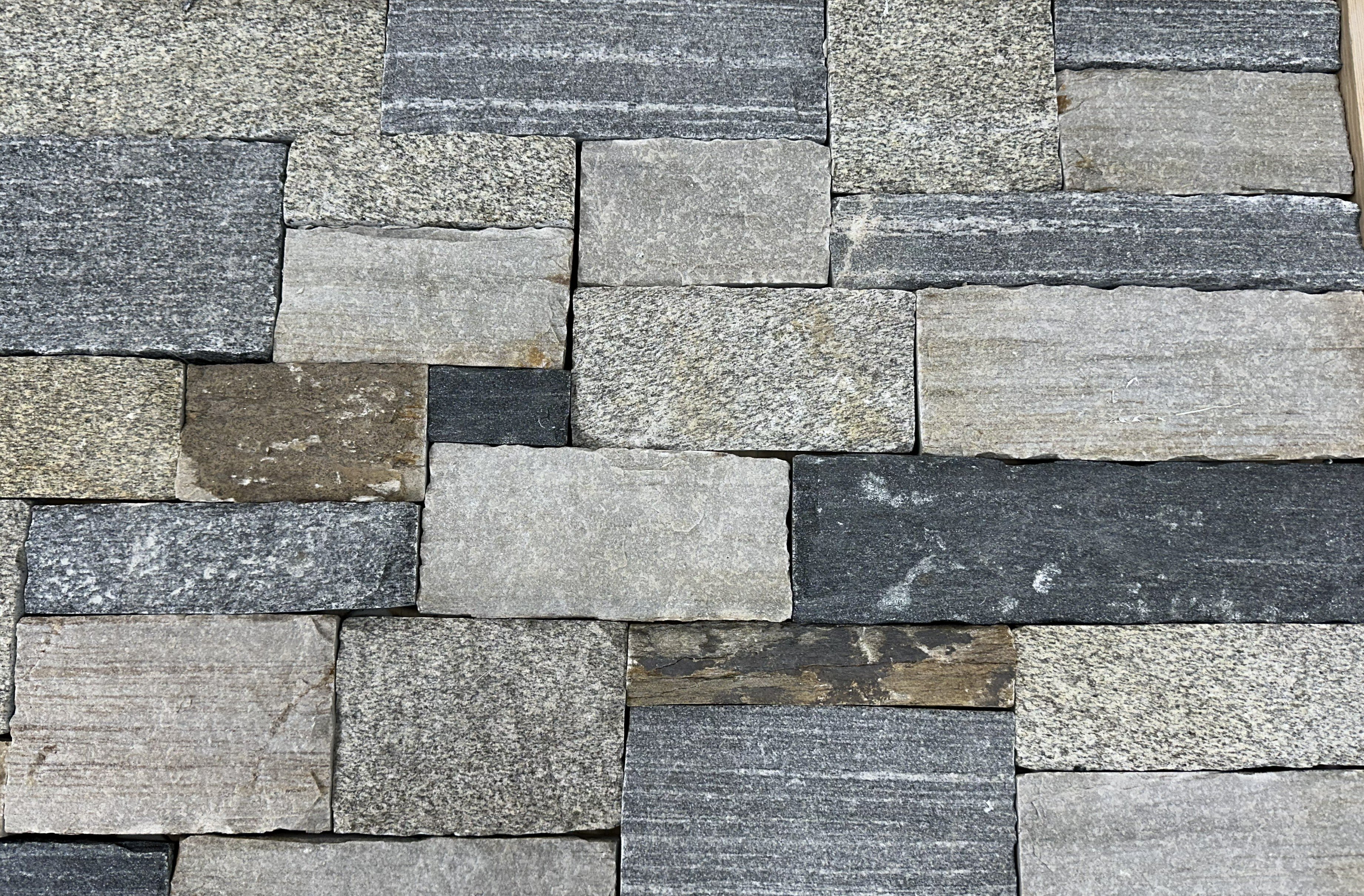 Designed to meet growing demand for darker tones, this blend combines medium tans and greys with deep charcoal hues, offering unique variation and medium texture for a look that both "blends" seamlessly and makes a statement. Built from four existing collections, including two stones from one of our popular blends, it delivers the natural authenticity, versatility, and craftsmanship that Delgado Stone is known for, and a fresh alternative!